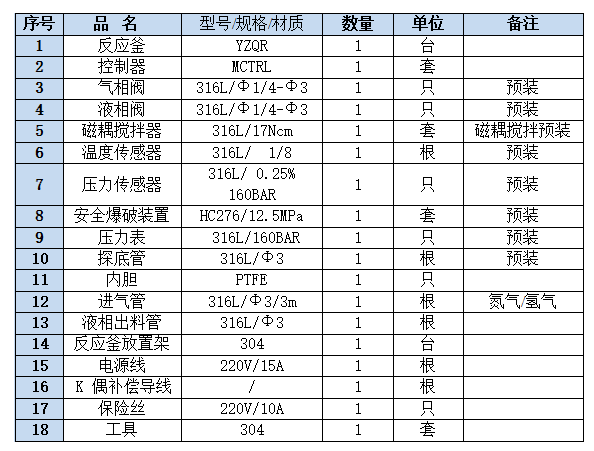 巖征儀器 微型快開磁耦攪拌反應釜配置清單: